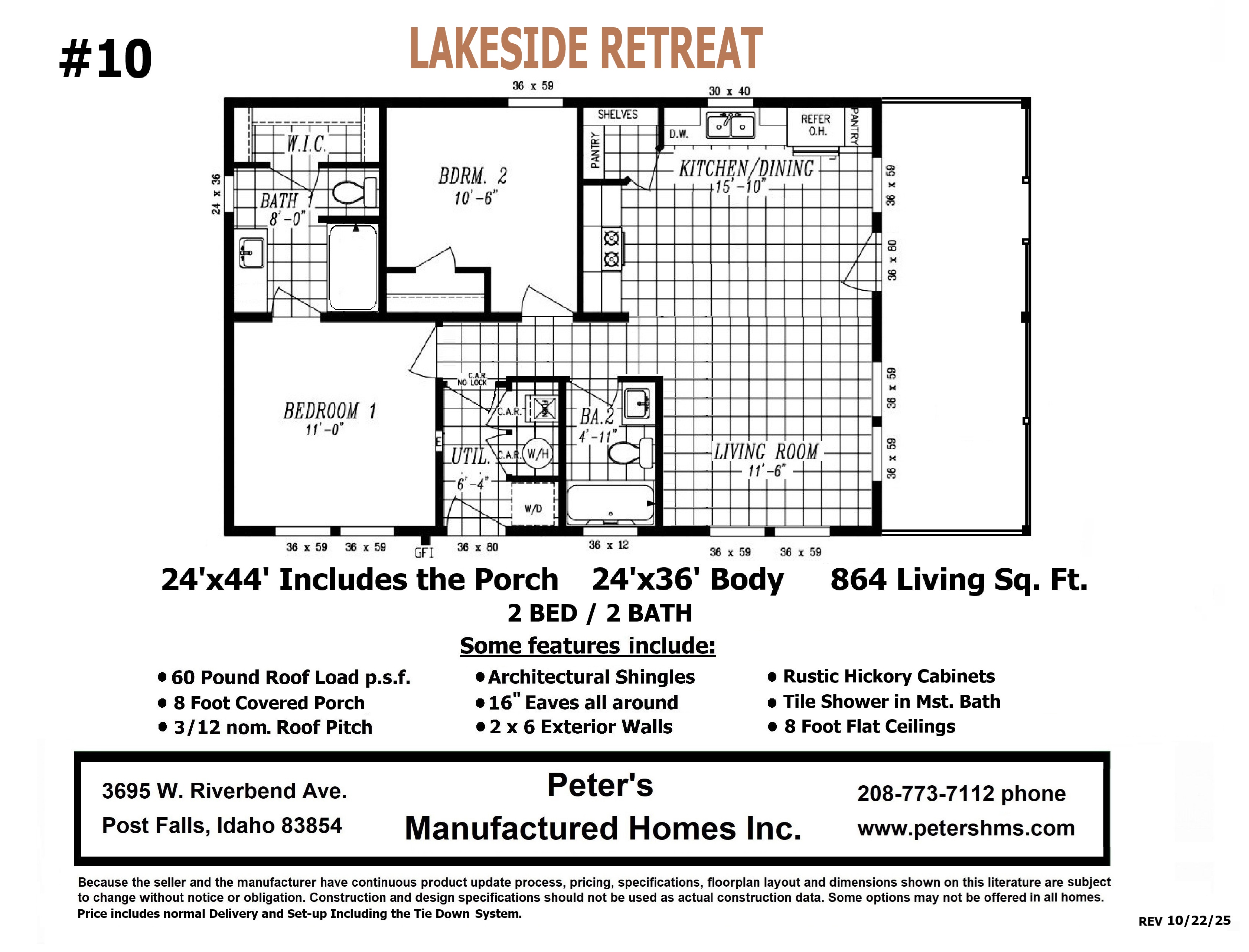 PLEASE NOTE: All sizes and dimensions are nominal or based on approximate builder measurements. Peter’s Homes reserves the right to make changes due to any changes in material, color, specifications and features anytime without notice or obligation.